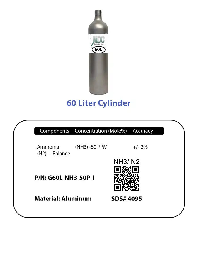 $304.00 60 Liter Ammonia (NH3) quantity Add to cart SKU: G60L-NH3-50P-I Category: Gas Cylinders Description Description NH3, 50 ppm in air Related products Hydrogen Cyanide (HCN) $232.75 Add to cart Methane (CH4) $128.73 Add to cart Carbon Monoxide (CO) $109.25 Add to cart Propane (C3H8) $52.25 Add to cart