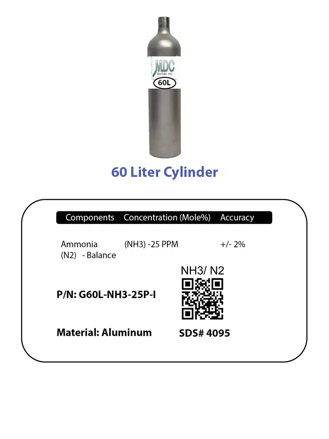 $304.00 60 Liter Ammonia (NH3) quantity Add to cart SKU: G60L-NH3-25P-I Category: Gas Cylinders Description Description NH3, 25 ppm in N2 Related products Hydrogen Chloride (HCL) $304.00 Add to cart Phosphine (PH3) $304.00 Add to cart Carbon Monoxide (CO) $109.25 Add to cart Propane (C3H8) $52.25 Add to cart