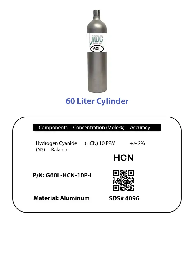 $232.75 60 Liter Hydrogen Cyanide (HCN) quantity Add to cart SKU: G60L-HCN-10P-I Category: Gas Cylinders Description Description HCN, 10 ppm in N2 Related products Hydrogen Chloride (HCL) $304.00 Add to cart Carbon Dioxide (CO2) $109.25 Add to cart Hydrogen (H2) $95.00 Add to cart Chlorine (Cl2) $323.00 Add to cart
