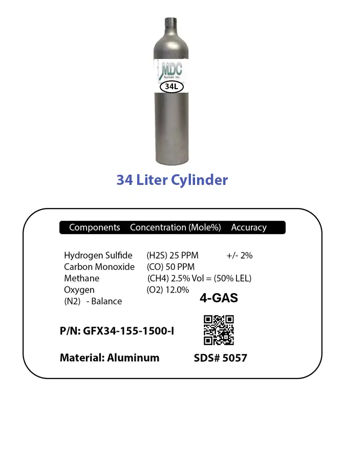 $118.75 34 Liter Hydrogen Sulfide (H2S), Carbon Monoxide (CO), Methane (CH4), Oxygen (O2) quantity Add to cart SKU: GFX34-155-1500-I Category: Gas Cylinders Description Description Hydrogen Sulfide 25 ppm/ Carbon Monoxide 50 ppm/ Methane 2.5% (50% LEL)/ Oxygen 12.0%/ N2 Related products Nitrogen (N2) $95.00 Add to cart Ammonia (NH3) $304.00 Add to cart Silane (SiH4) $304.00 Add to cart Hydrogen Chloride (HCL) $304.00 Add to cart