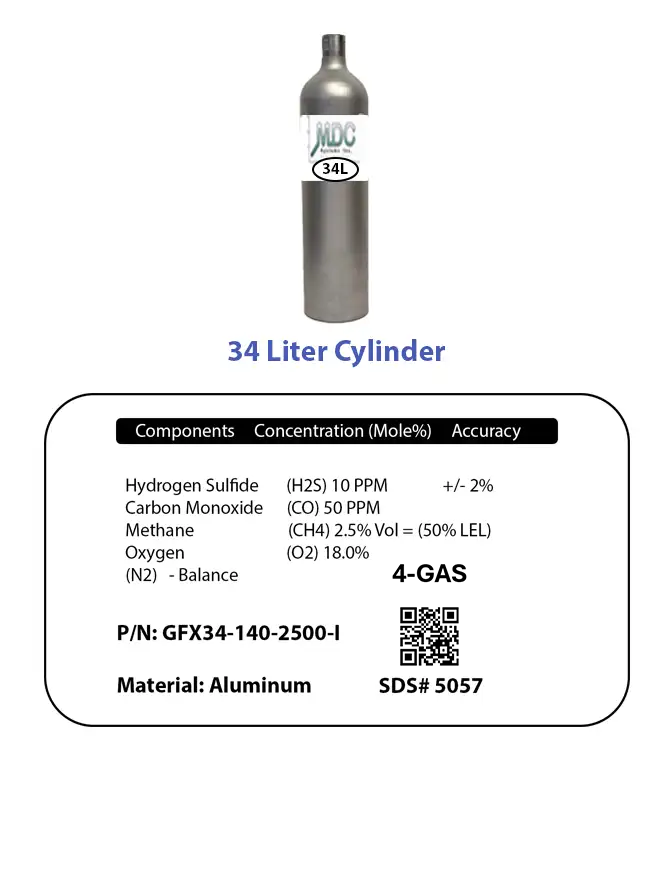 $151.05 34 Liter Hydrogen Sulfide (H2S), Carbon Monoxide (CO), Methane (CH4), Oxygen (O2) quantity Add to cart SKU: GFX34-140-2500-I Category: Gas Cylinders Description Description Hydrogen Sulfide 10 ppm/ Carbon Monoxide 50 ppm/ Methane 2.5% (50% LEL)/ Oxygen 18.0%/ N2 Related products Phosphine (PH3) $304.00 Add to cart Propane (C₃H₈) Calibration Gas – 1.05% (50% LEL) $52.25 Add to cart Carbon Monoxide (CO) $109.25 Add to cart Propane (C₃H₈) Calibration Gas – 1.10% (50% LEL) $52.25 Add to cart
