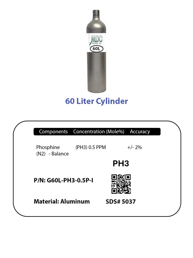 $304.00 60 Liter Phosphine (PH3) quantity Add to cart SKU: G60L-PH3-0.5P-I Category: Gas Cylinders Description Description PH3, 0.5 ppm in N2 Related products Oxygen (O2) $95.00 Add to cart Hydrogen Sulfide (H2S) $142.50 Add to cart Nitric Oxide (NO) $304.00 Add to cart Silane (SiH4) $304.00 Add to cart